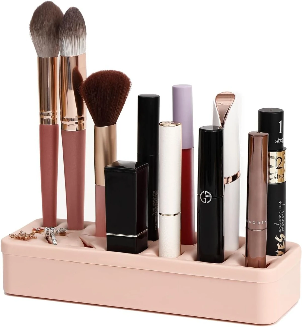 El pequeño compartimento cuadrado puede contener todo tipo de lápices de cejas, pinceles de sombra de ojos, aretes, etc.