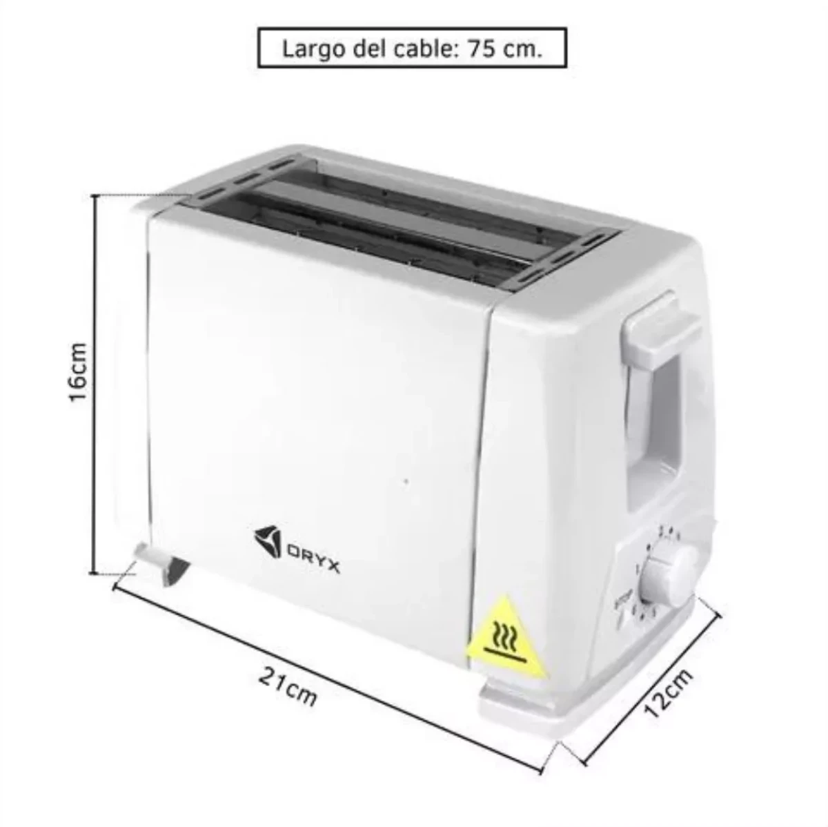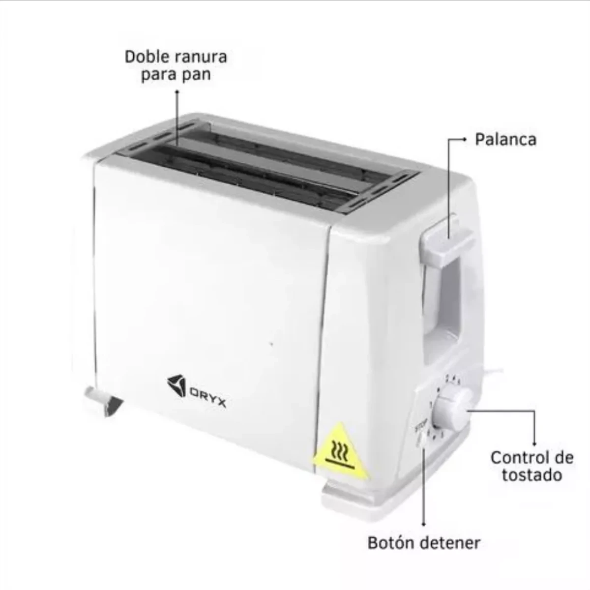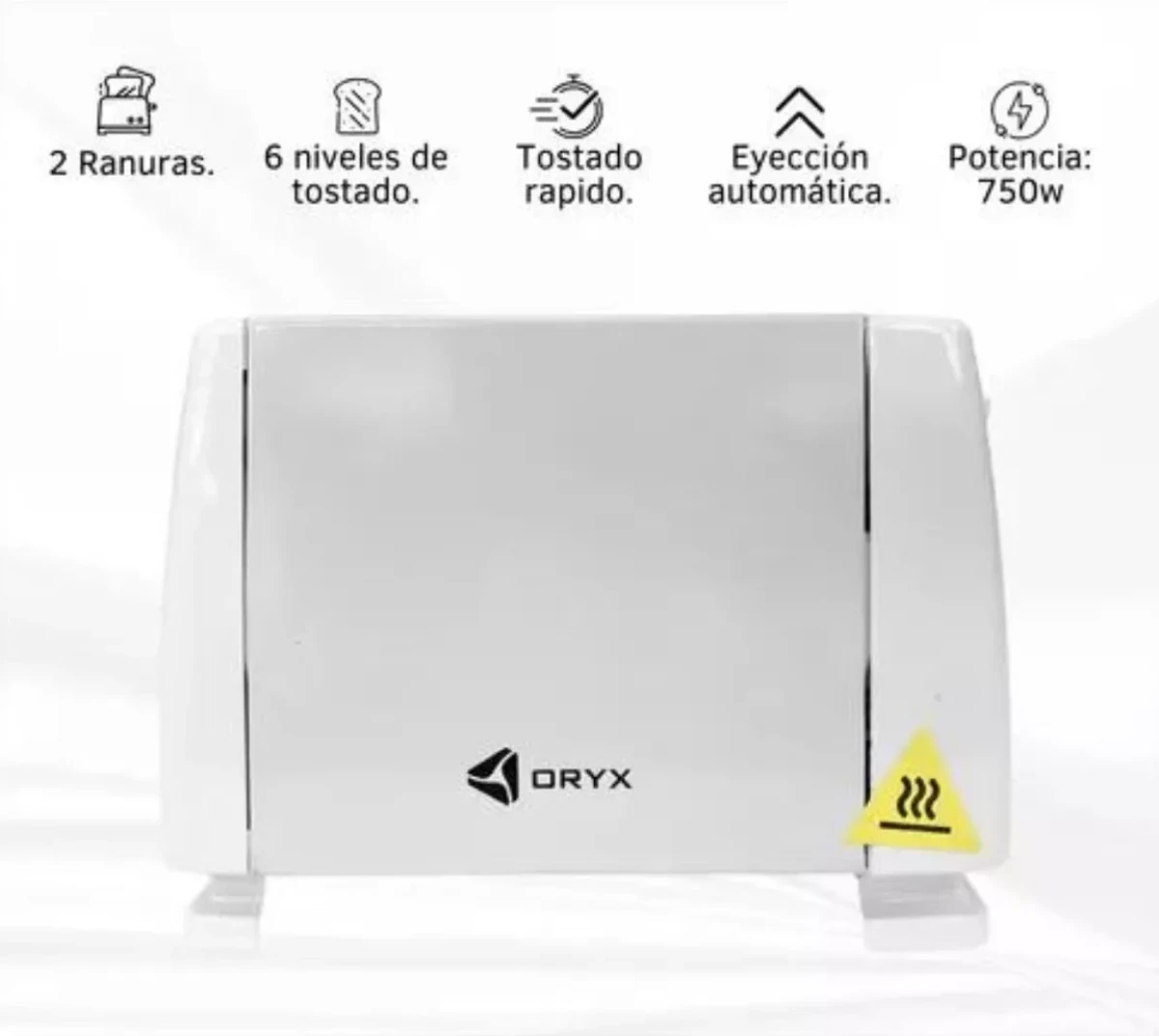 Características:• Doble ranura para pan.• 6 niveles de tostado.• Botón detener.• Potencia: 750W.• Eyección automática.• Largo del cable: 75cm.